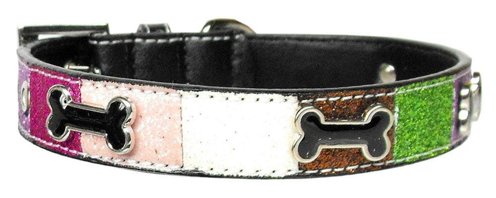 Glittery faux leather collar in a feminine combination of colors! This large size collar is 3/4" wide and fits a neck size from 14-18".