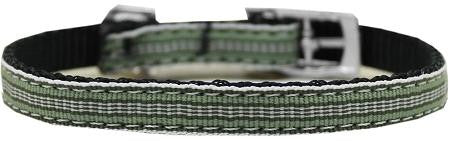 Preppy Stripes Nylon Dog Collar with classic buckles 3-8" Green-White Size 8