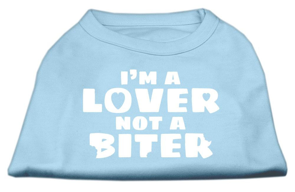 I'm a Lover not a Biter Screen Printed Dog Shirt Baby Blue XS (8)