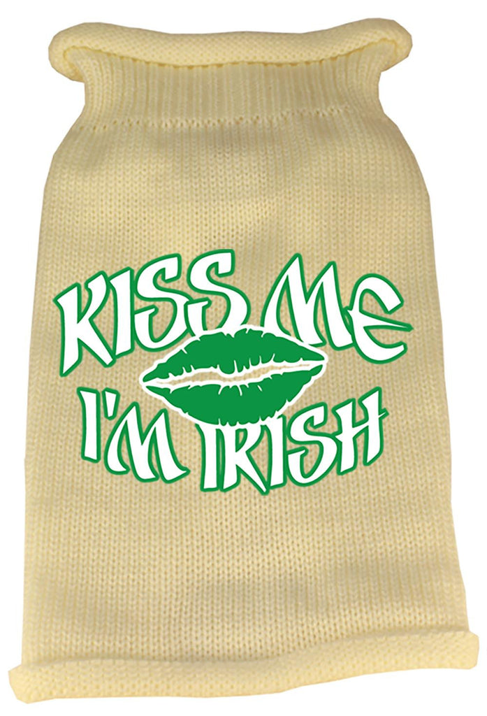 Kiss Me Im Irish Screen Print Knit Pet Sweater XXL Cream