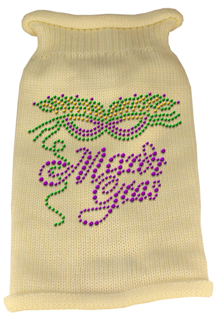 Mardi Gras Rhinestud Knit Pet Sweater XS Cream