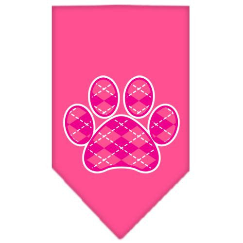 Argyle Paw Pink Screen Print Bandana Bright Pink Small