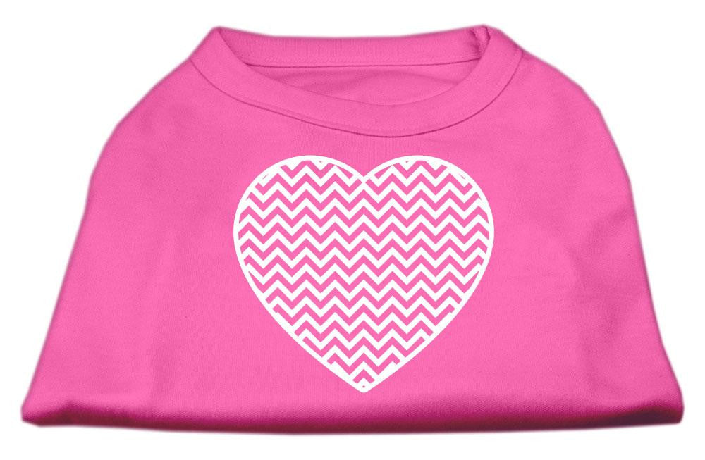 Chevron Heart Screen Print Dog Shirt Bright Pink Med (12)