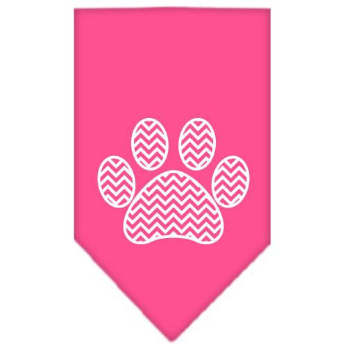 Chevron Paw Screen Print Bandana Bright Pink Small