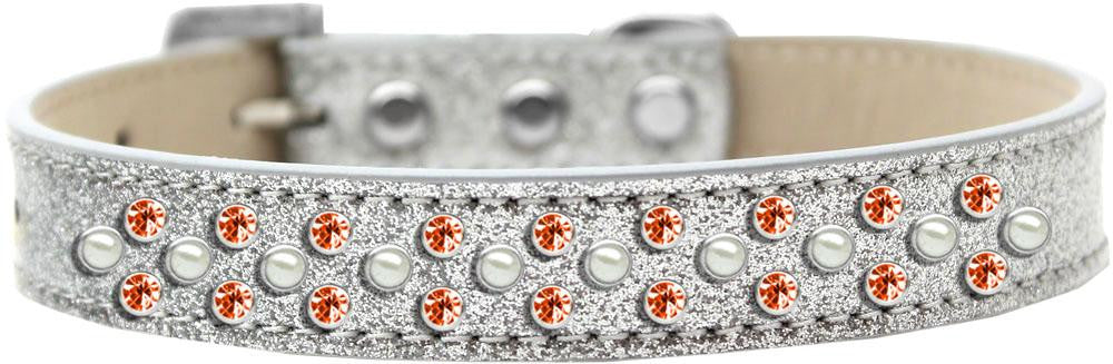 Sprinkles Ice Cream Dog Collar Pearl and Orange Crystals Size 12 Silver