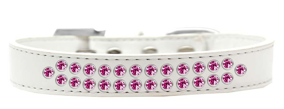 Two Row Bright Pink Crystal Size 20 White Dog Collar