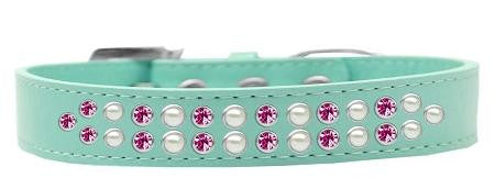 Two Row Pearl and Pink Crystal Size 14 Aqua Dog Collar
