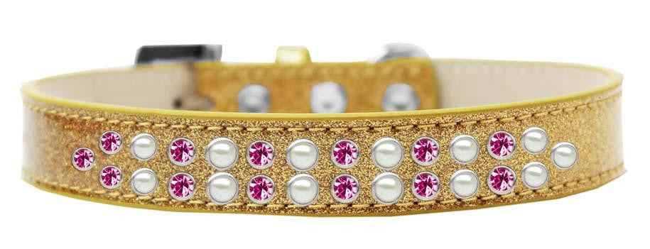 Two Row Pearl and Pink Crystal Size 20 Gold Ice Cream Dog Collar